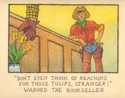 with me on keeping Aardvark going and readying the building for re-opening. Her cultural recommendations are always great and it is down to her that I have signed up for the Hay Player which is quite simply the best possible use of £10 imaginable. So many great historical recordings, and this morning I finished listening to the great Hay session with Glen Baxter from a few years ago. Baxter has been a hero of mine since I was first introduced to his work by a friend at university in the Eighties. I had always wondered where such an intriguing artist came from and had speculated on his influences. This talk makes it clear that he came from an art, not a graphic art or cartoon background, and that his is a very European talent influenced above all else by surrealism and particularly Breton. Also key to his emergence was Edward Gorey and the Gotham Bookmart. I found the GBM by accident when wandering around New York in the late 80’s and as a customer who knew nothing of its history or Gorey’s connections I found it both glorious and infuriating - it was one of those bookshops where as a customer one always felt something of an interloper, or an outsider witnessing an in-joke. It had a brilliant metal sign outside that said ‘Wise Men Fish Here’. Like many of the great New York Bookstores (where are you, Scribners when we need you most?) it is no longer with us having closed in 2007, but its legacy lives on.